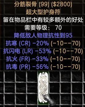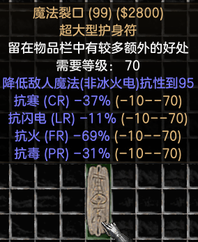 负面属性为:人物所有抗性-10-70